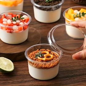 50 Round Plastic Dessert Containers + Lid 300ml