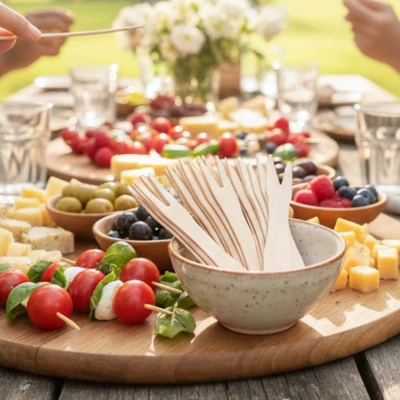 100 Wooden Cocktail Forks 8.5cm Wide Tooth