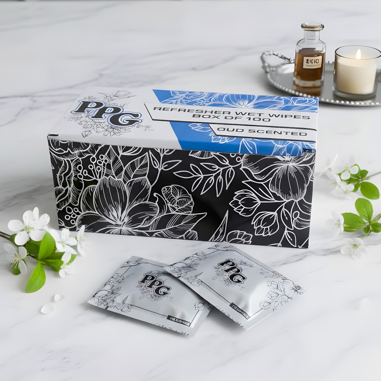 100s Wet Wipes Wrapped Silver Oud Scented