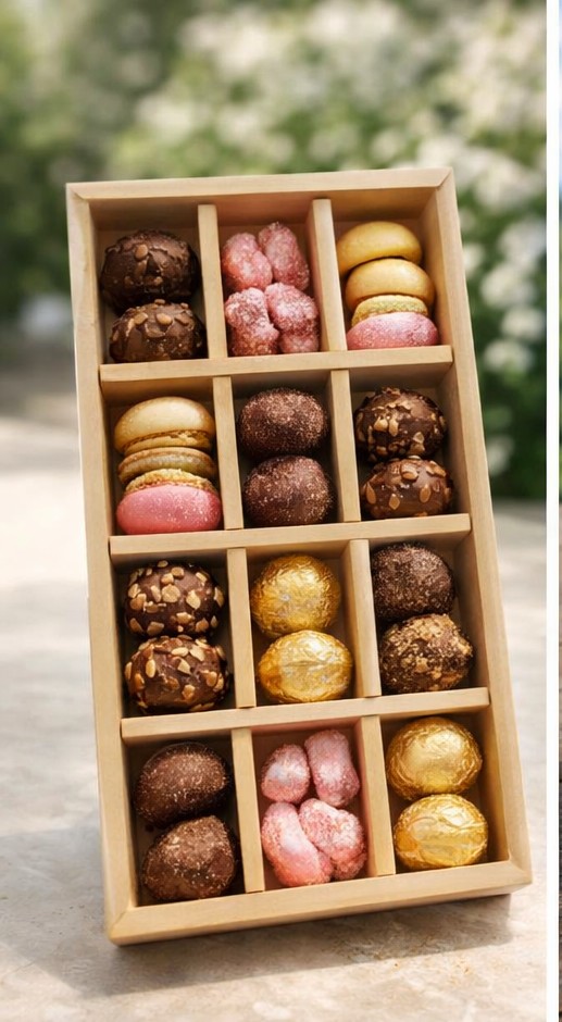 12 Division Kraft Truffle Box with PVC Lid 42×23.5x6cm is a practical food packaging option for takeaway meals, catering, parties and daily kitchen use.