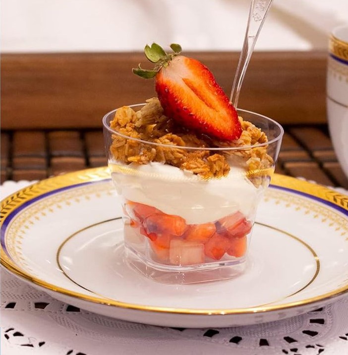 25 X Mini Acrylic Dessert Cups 7.5×5.5cm 150ml is a practical food packaging option for takeaway meals, catering, parties and daily kitchen use.
