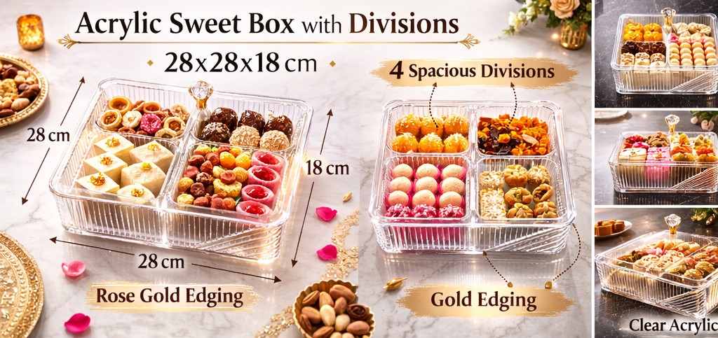 It comes with the following benefits: Acrylic Sweet Box w/ Divisions 28x28x18cm 2526V is an excellent choice for those looking for quality and functionality. Acrylic Sweet Box w/ Divisions 28x28x18cm 2526V This product is designed with durability and convenience in mind, making it a valuable addition to your collection. Whether for personal use or as a gift, Acrylic Sweet Box w/ Divisions 28x28x18cm 2526V stands out for its unique features and high-quality materials. Customers love this product because of its reliability, design, and ease of use. Get yours today and experience the difference!.